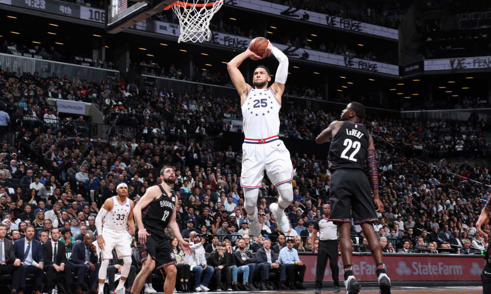 BROOKLYN, NY – APRIL 18: Ben Simmons #25 of the Philadelphia 76ers goes to the basket against the Brooklyn Nets during Game Three of Round One of the 2019 NBA Playoffs on April 18, 2019 at the Barclays Center in Brooklyn, New York. NOTE TO USER: User expressly acknowledges and agrees that, by downloading and/or using this photograph, user is consenting to the terms and conditions of the Getty Images License Agreement. Mandatory Copyright Notice: Copyright 2019 NBAE (Photo by Nathaniel S. Butler/NBAE via Getty Images)